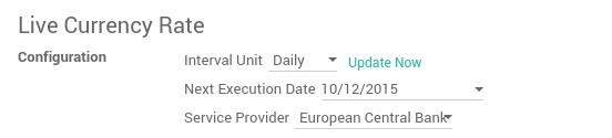 激活货币后, 你可以配置的参数自动更新汇率。这些选项的设置也在会计应用程序中, 在页面的底部 :