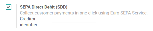 进入 并激活 SEPA 直接借记 (SDD) 功能。输入贵公司的债权人识别码。此号码由您的银行提供。