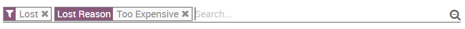 要检索丢失的机会并对其采取行动(发送电子邮件、拨打反馈电话等),请在搜索栏中选择“丢失”过滤器。