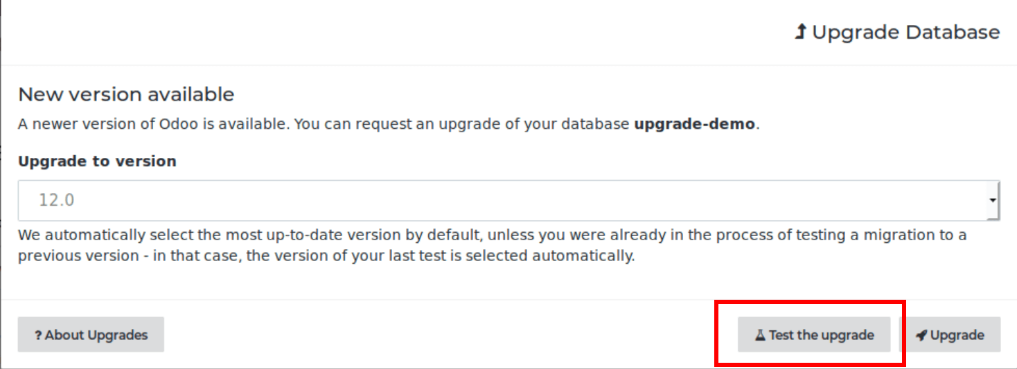 You have the possibility to choose the target version of the upgrade. By default, we select the highest available version available for your database; if you were already in the process of testing an upgrade, we will automatically select the version you were already testing (even if we released a more recent version during your tests).