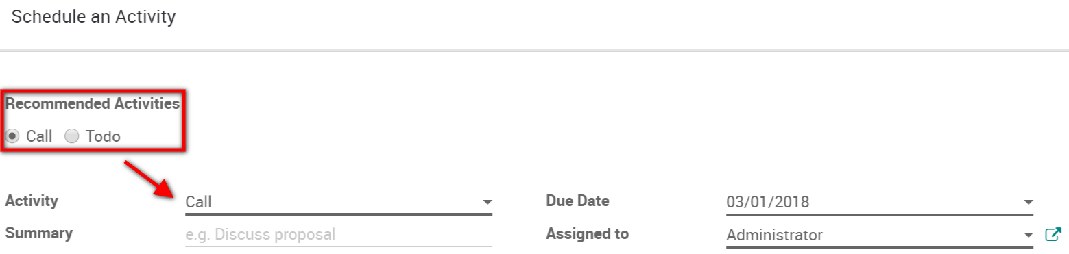 Odoo helps you easily plan your usual flow of activities. Go to and set the common following steps as Recommended next activities.