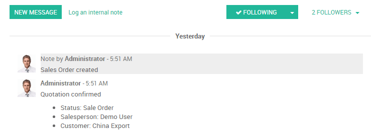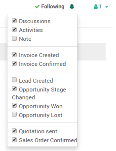 在Odoo中几乎可以**关注**任何业务目标(如一个机遇、报价或任务等)