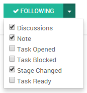 你已自动成为你所创建的所有项目的默认粉丝。在CRM和Project等应用中,可以成为任何新创建记录的默认粉丝并收到特别事件的通知(如创建新任务、赢得机会等)