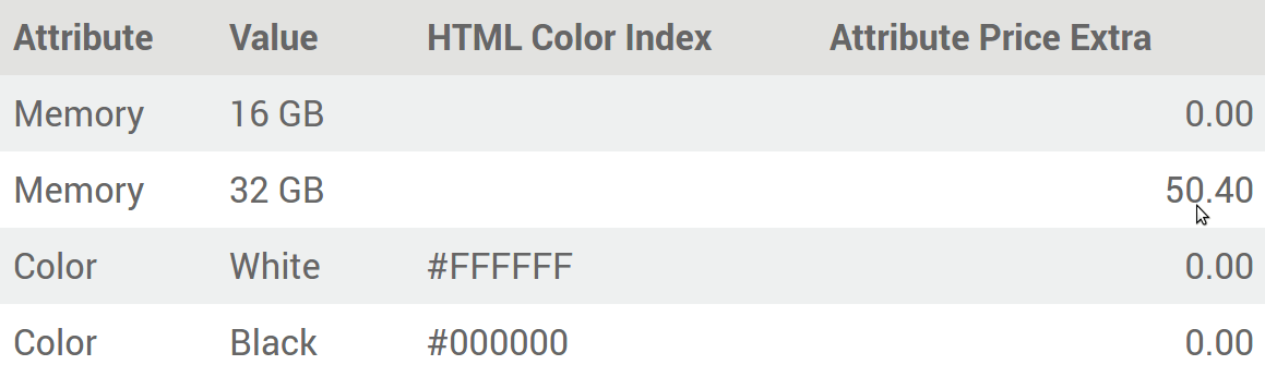每当选择了对应的属性值,都可以为产品价格添加额外价格。
