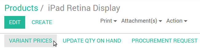 你还可以点击产品详情表(左上角)的*变量价格*,为每一种变量设置特定的公开价格。