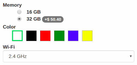 - 添加三种类型的多个属性:单选按钮、下拉菜单或颜色按钮。因为每种属性有多个变量,故你得到多个变量。