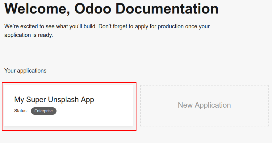 - Go to your applications dashboard and click on your newly created Unsplash application under Your applications.