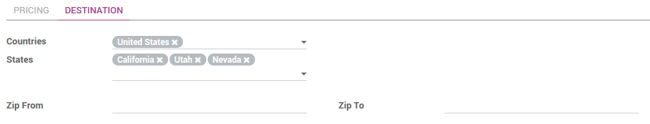 最终我们可以把发货方式局限在几个目的位置。你可以把它们限制为一些国家, 省份甚至邮编。这种特性限制了电商的国家列表。