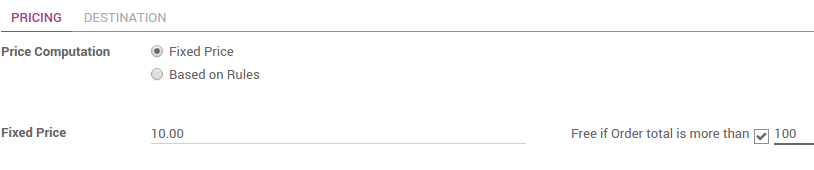 • 如果价格根据规则不同而不同, 点选 基于规则 。点击 添加一个价格规则的新条目 。选择一个或者基于重量, 容积, 价格或者数量的条件。