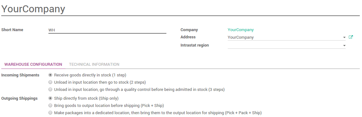 一个订单进入到发货部门的最后一步时, Odoo默认会使用一步操作 : 一旦所有的货物都准备好, 就可以使用一张发货单进行发货