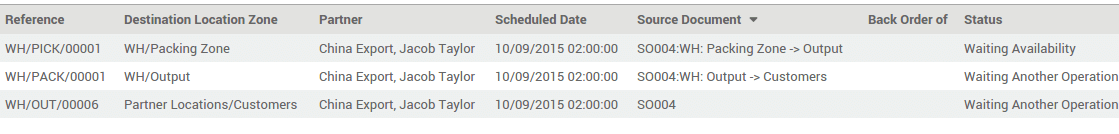 Odoo通过 路线 配置交货单的移动。路线提供了一种把不同动作链接到一块的机制。在该状况下, 我们把拣货步骤链接到发货步骤。