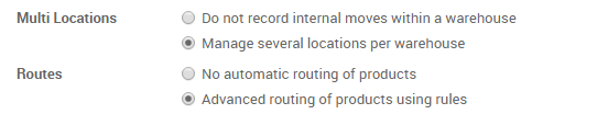 库位库 ‣路线 中, 勾选激活 产品的高级路径规则 。并确保 仓库多位置管理 也被激活。