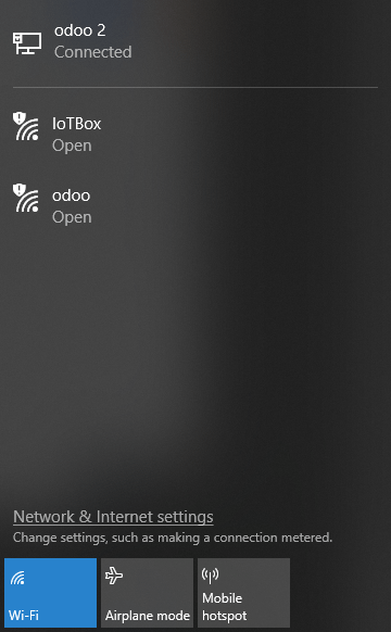 - Connect to the IoT Box WiFi Network (make sure there is no ethernet cable plugged in your computer).