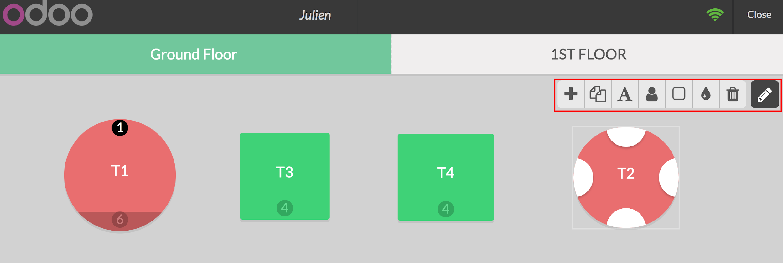When you click on the pencil you will enter into edit mode, which will allow you to create tables, move them, modify them, …