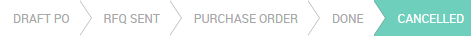 Odoo 会自动取消和这个采购单相关的未完成的运输。 采购单 的状态栏上会变成 取消