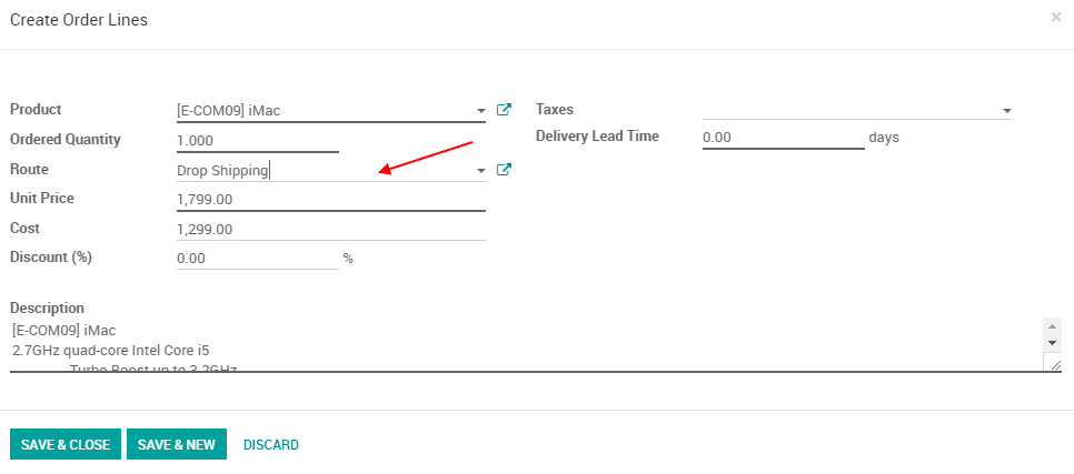 When you create a quotation or sales order, you can now decide, order line per order line, which products should be drop shipped by selecting the dropship route on the SO line.