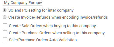 - 采购订单和销售订单能够被关联。如果你的集团下的子公司创建了一个采购订单或销售订单, 相关的文档会自动生成。你要做的只是检查正确性并确认销售。你可以在你的销售或采购单上自动校验。