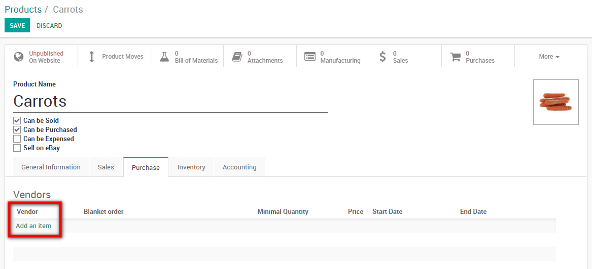 If you find yourself with the need to buy from multiple vendors for one product, Odoo can let you directly link them with a single product.