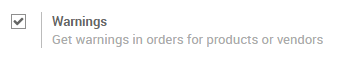 The Warnings feature allows you to raise warnings or blocking messages on purchase orders based on a vendor or a product.