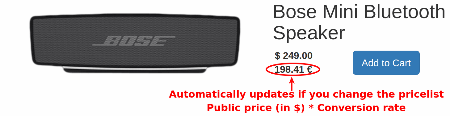 公开价格以贵公司的主要货币计算(参见 会计 ‣ 设置) 并在产品详细信息表中设置.