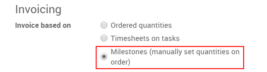 您必须在“常规信息”下将产品类型设置为服务,并在“销售”标签页中选择里程碑