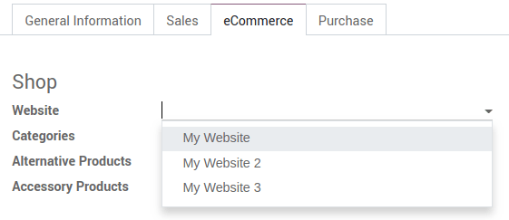 We already saw earlier how to publish a specific record in only one website. You will find the *Website* field in the eCommerce tab of the product edit form. Empty means available in all websites.